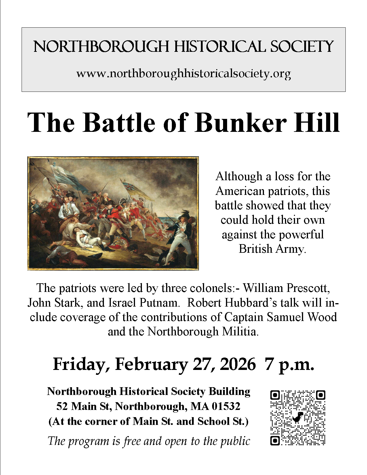All of 2025 and 2026: Check out the "Rev250" menu bar item or just click here to learn about Northborough's planned activities and celebrations during this the 250 year anniversary of the American Revolution. Learn how the town was involved in the Revolution.
