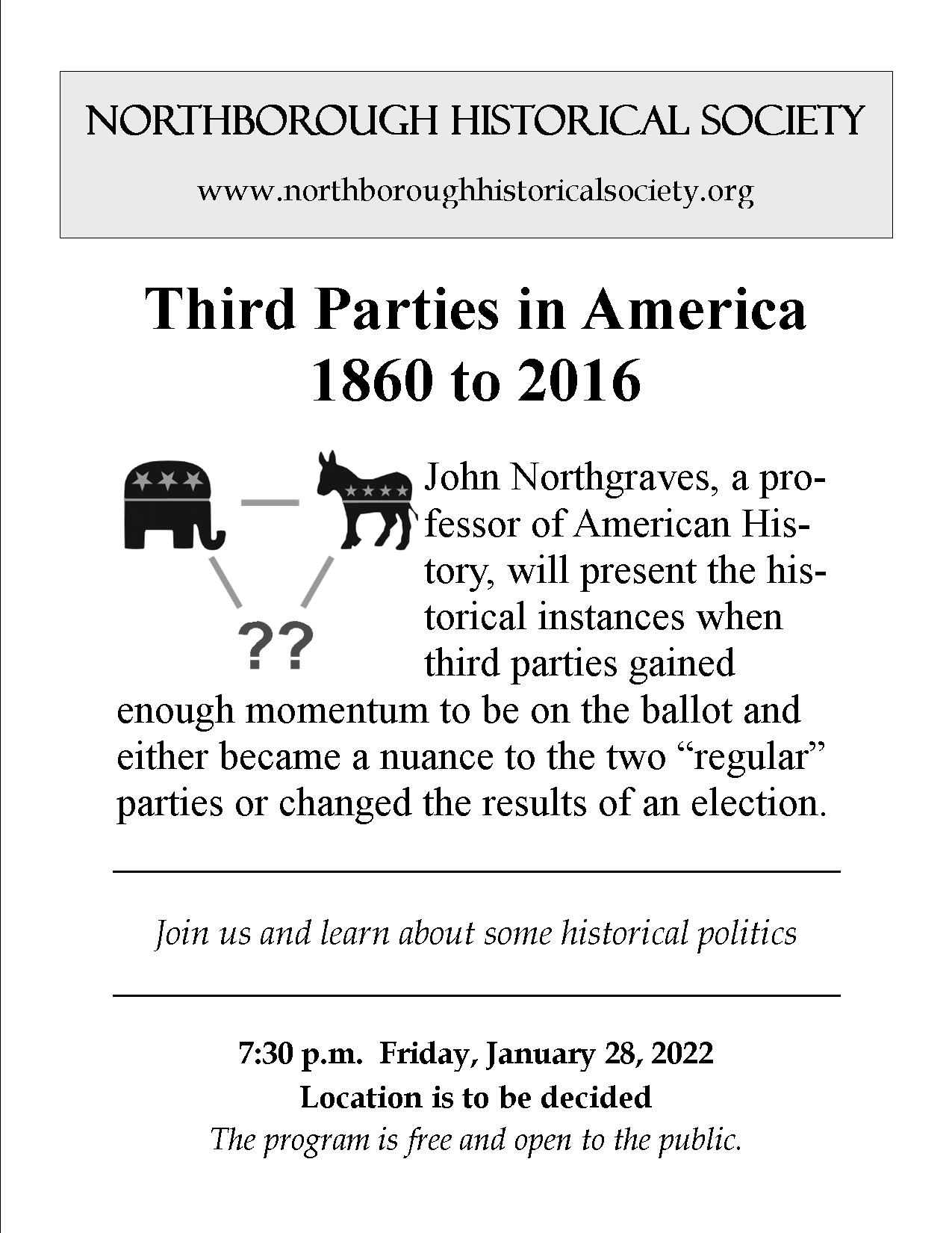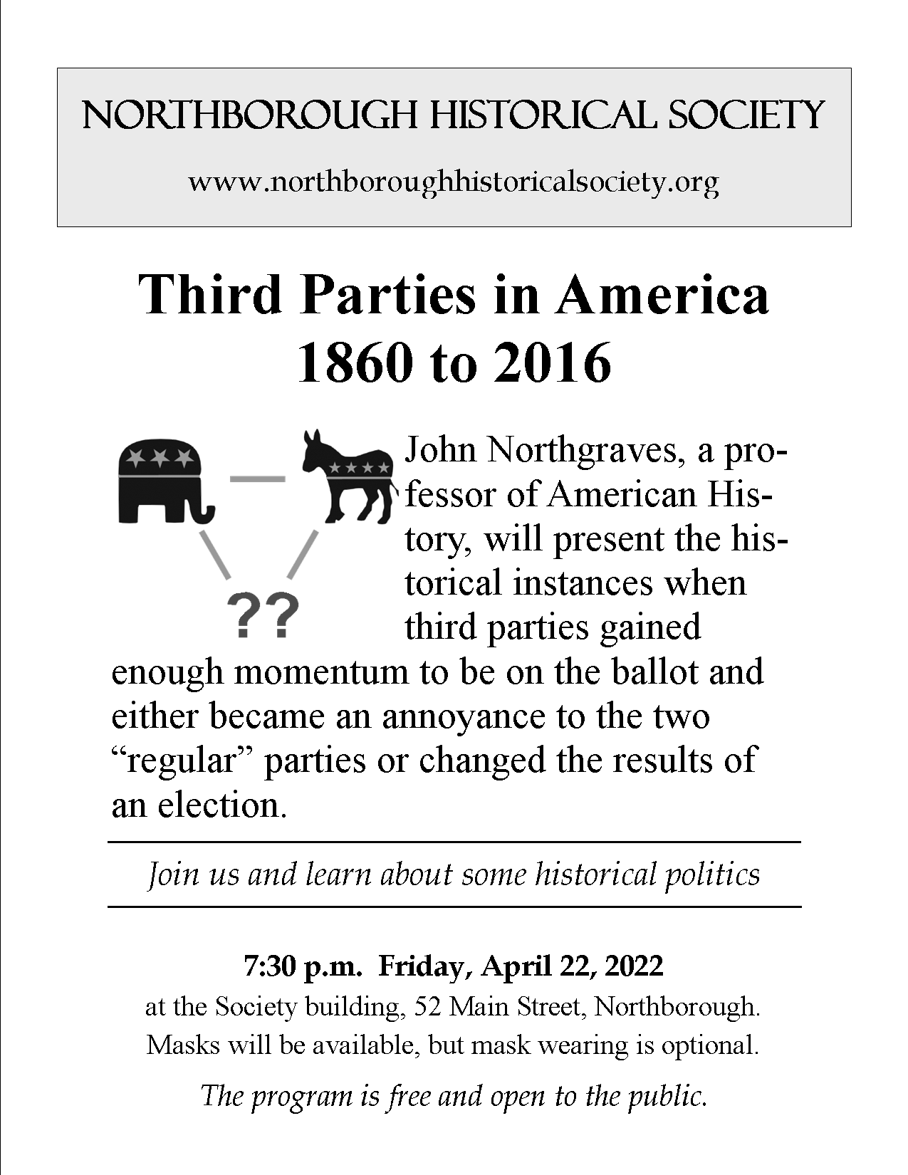 Place: The Historical Society Building, 52 Main St., Northborough.