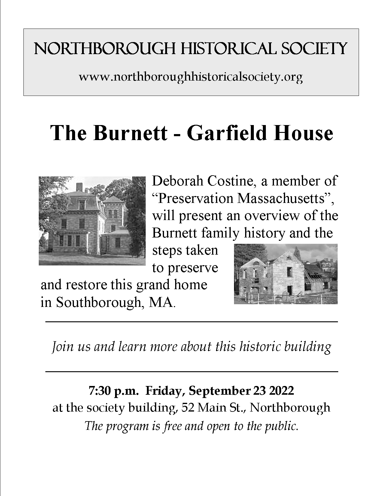 For more information, contact us at: Info@NorthboroughHistoricalSociety.org or 508.393.6298.